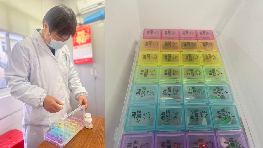 为解决“记不住”的难题,团队还送上“暖心配套服务”。他们为老人配备彩色分格药盒,由药师上门协助分装一周药量;设置定时闹钟提醒,在药盒旁张贴了清晰的服药清单和打卡记录表;建立“家医—家属”微信联动机制,让子女远程了解老人的服药情况,方便子女发送温馨提醒;护士也会定期电话随访,确认老人用药情况并叮嘱其复查。除此之外,团队还持续开展健康宣教和心理疏导,用通俗易懂的语言给老人讲解用药知识,还常用“我们帮你一起记”等暖心话语,缓解老人的心理压力。